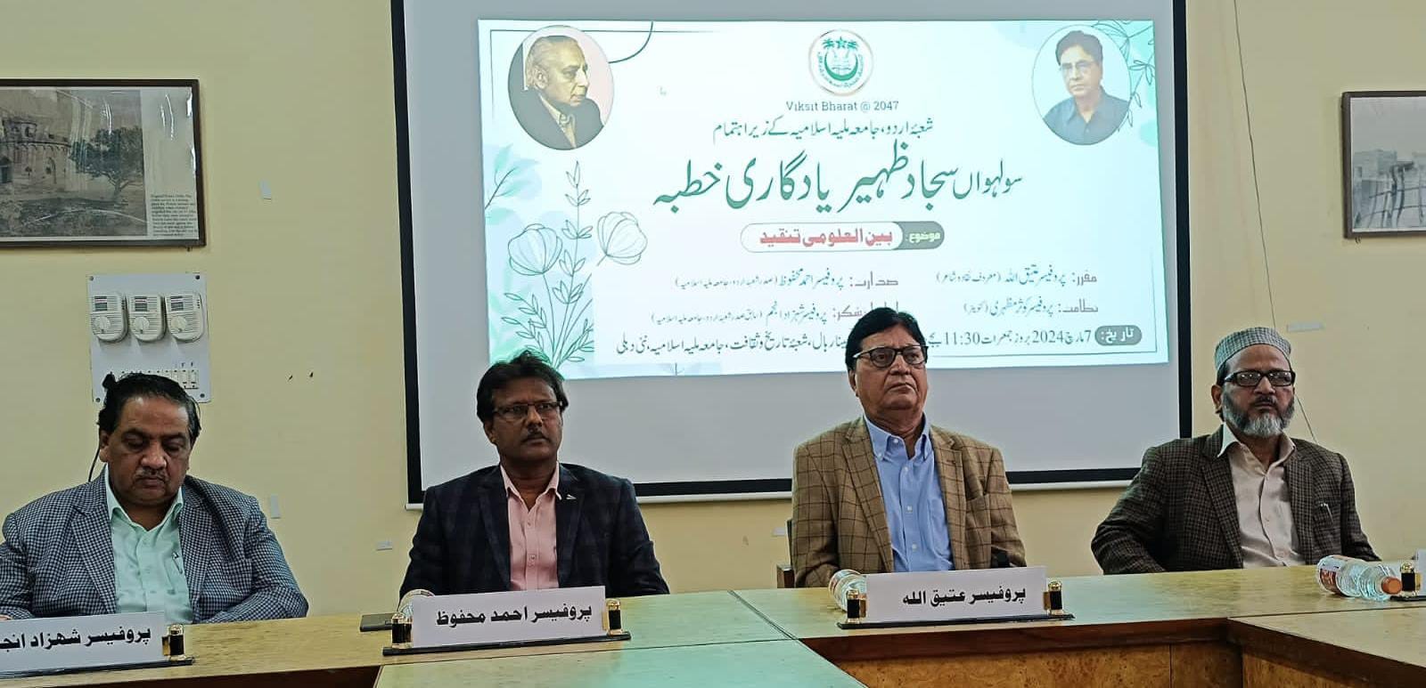 شعبۂ اردو، جامعہ ملیہ اسلامیہ کے زیرِ اہتمام سولہویں سجاد ظہیر یادگاری خطبے کا انعقاد