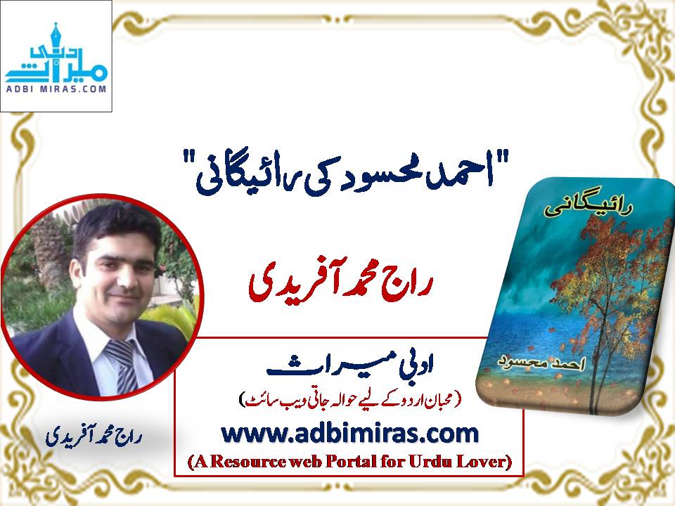 احمد محسود کا پہلا شعری مجموعہ”رائیگانی” جس کی اشاعت جنوری 2022 میں ہوئی، ہفتہ قبل میرے ہاتھ آیا۔ سچ پوچھیں تو میں نے احمد محسود کو ایک نابالغ شاعر کی تصویر بنا کر ان کی غزلیں پڑھنا شروع کیں۔ مجھے حیرانی سمیت بہت خوشی ہوئی کہ جنوبی اضلاع سے متعلقہ ایک نوجوان شاعر اساتذہ کی تقلید میں اردو ادب کی خدمت کے لیے کوشاں ہے۔ یہ یاد رہے کہ احمد محسود نے اپنی شاعری کو ایک خاص موضوع تک محدود نہیں رکھا ہے۔ان کے کلام میں عشق رسول صلی اللہ علیہ وسلم، امید ، ترغیبی و انقلابی انداز ، اداسی، دنیا کی بے ثباتی، زمانے کی نا قدری، تنہائی، وحشت، داخلی اضطراب،نا آسودگی، مسکن سے ہجرت کا دکھ اور دیگر موضوعات نمایاں ہیں۔
