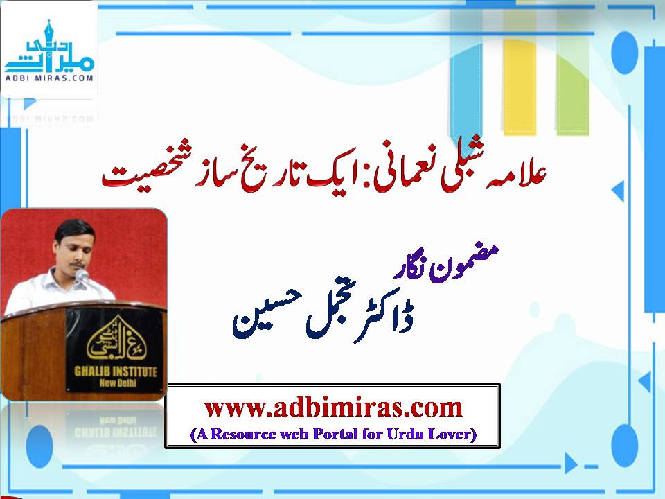 علامہ شبلیؔ نعمانی جیسی نابغۂ روزگار شخصیت پر قلم کاروں نے متعدد کتابیں قلم بند کر چکے ہیں لیکن دنیا میں کچھ شخصیات ایسی گزری ہیں کہ ان کے حوالے سے لکھنا پڑھنا بعد میں آنے والوں کے لیے باعث فخر اور معیار علم وادب بن جاتا ہے اور بلاشبہ شبلی کی شخصیت انھیں میں سے ایک ہے۔