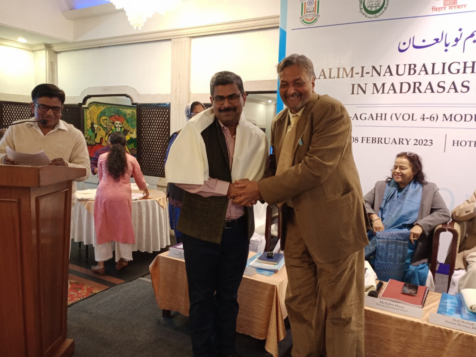 نئی دہلی (7 ؍فروری) اقوام متحدہ کے ذیلی ادارے اقوام متحدہ فنڈ برائے آبادی(UNFPA) کا ایک عظیم اجلاس پٹنہ کے چانکیہ ہوٹل میں منعقد ہوا۔اس دوروزہ اجلاس( 7-8فروری)کی افتتاحی تقریب پٹنہ کے چانکیہ ہوٹل میں نامورماہرین تعلیم اوردانشوران کی موجودگی میں عمل میں آئی۔پروجیکٹ ڈائرکٹرپروفیسر اعجازمسیح نے ورکشاپ کے مقاصد اور تیارکردہ ماڈیولزسے حاضرین کوروشناس کرایا۔بہاراسٹیٹ مدرسہ ایجوکیشن بورڈ کے سکریٹری محمد سعید انصاری نے نصاب کو معنی خیز اورانقلابی قراردیا اور امید ظاہر کی کہ یہ ماڈیولز مدارس کے طلبا وطالبات کے زندگیوں کو بدلنے میں اہم رول اداکریں گے۔مولانامظہرالحق عربی اور فارسی یونیورسٹی کے شیخ الجامعہ ڈاکٹرمحمد عالمگیرنے اس موقع پر خصوصی خطاب کیا اور اس پروگرام کے ذریعے کی جانے والی کوششوں کو سراہتے ہوئے اس کی افادیت پر زوردیا۔تقریب میں امارت شرعیہ پھلواری شریف کے جنرل سکریٹری اورمشہورعالم دین مولاناانیس الرحمان قاسمی ، پٹنہ کے مشہورسرجن ڈاکٹرعبدالحی، امام بخاری یونیورسٹی کے بانی ڈاکٹرمطیع الرحمان سلفی،شفیع مشہدی، محترمہ فرحت حسن اورڈاکٹرارشد اکرام کے علاوہ بہت سے پروفیسر صاحبان اور ماہرین نے خطاب کیا۔افتتاحی تقریب کے بعد ٹیکنکل سیشن منعقد ہوئے جن میں تفصیل سے چارماڈیولز کو پیش کیا گیا اور ان پر ماہرین تعلیم نے قیمتی مشورے اور تجویزیں پیش کیں تاکہ ان کو مزید مفید، جامع اور بہتر بنایاجاسکے۔دوماڈیولز جامعہ ملیہ اسلامیہ کے ڈاکٹرمحمد اسجد انصاری نے پیش کیے ، ایک ماڈیول دہلی یونیورسٹی کے شعبہ عربی سے ڈاکٹر نعیم الحسن اور ایک ماڈیول جامعہ ملیہ اسلامیہ کے ڈپارٹمنٹ آف ایجوکیشنل اسٹڈیز کے صدرشعبہ ڈاکٹر ارشد اکرام نے پیش کیا۔یواین ایف پی اے نے ـ ’تعلیم نوبالغاں پروگرام‘ کے نام سے 2018 میں بہارکے مدارس کے لیے ایک بڑے پروجیکٹ کاآغازکیاتھا۔2020 میں تحتانیہ سطح کے مدارس کے لیے ’’دریچۂ آگہی‘‘ کے نام سے دوجلدوں پر مشتمل پانچ ماڈیول کااجراعمل میں آیا تھا اور بہار کے 34 اضلاع میں اس کا کامیاب تجربہ کیا گیا۔اب وسطانیہ سطح کے لیے مزید دوجلدوں پر مشتمل پانچ ماڈیولز کو حتمی شکل دینے کے لیے تیارکردہ ماڈیولز کو ماہرین تعلیم کے سامنے پیش کیا گیا۔واضح رہے کہ ماڈیولز پر مبنی اس متوازی نصاب کی تشکیل کا کام جامعہ ملیہ اسلامیہ ، نئی دہلی بحسن وخوبی انجام دے رہی ہے۔شعبہ تعلیمی مطالعات، جامعہ ملیہ اسلامیہ کے پروفیسر اعجازمسیح اس پروجیکٹ کے ڈائرکٹرہیں۔اس کے عملی نفاذ کی ذمے داری مولاناآزادنیشنل اردو یونیورسٹی کے سپردہے۔اس میں اس بات کی کوشش کی گئی ہے کہ نصاب قرآن وحدیث اصولوں کے عین مطابق ہو اور اسلامی تعلیمات سے متعارض نہ ہو۔