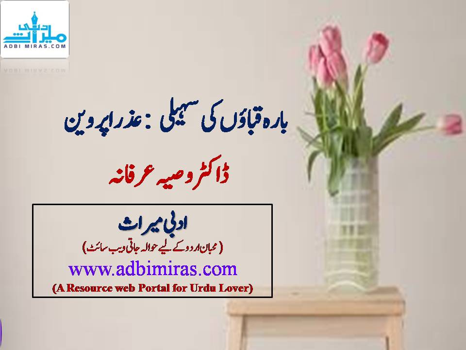 احساس کی یہ شدت اور لفظ لفظ جھلکتا یہ کرب یونہی نہیں وردان ہو تا ہے۔زندگی کی پتھریلی اور سلگتی راہوں پر ننگے پاؤں چلنے کے طفیل یہ نعمت حاصل ہوتی ہے۔’’ بارہ قباؤں کی سہیلی ‘‘ عذرا پروین کی انفرادی حکایت محض نہیں ہے بلکہ من حیث القوم ’’ عورت‘‘ اس داستان کا کردار ہے۔۔۔۔۔بالخصوص حساس اور ذہین عورت۔