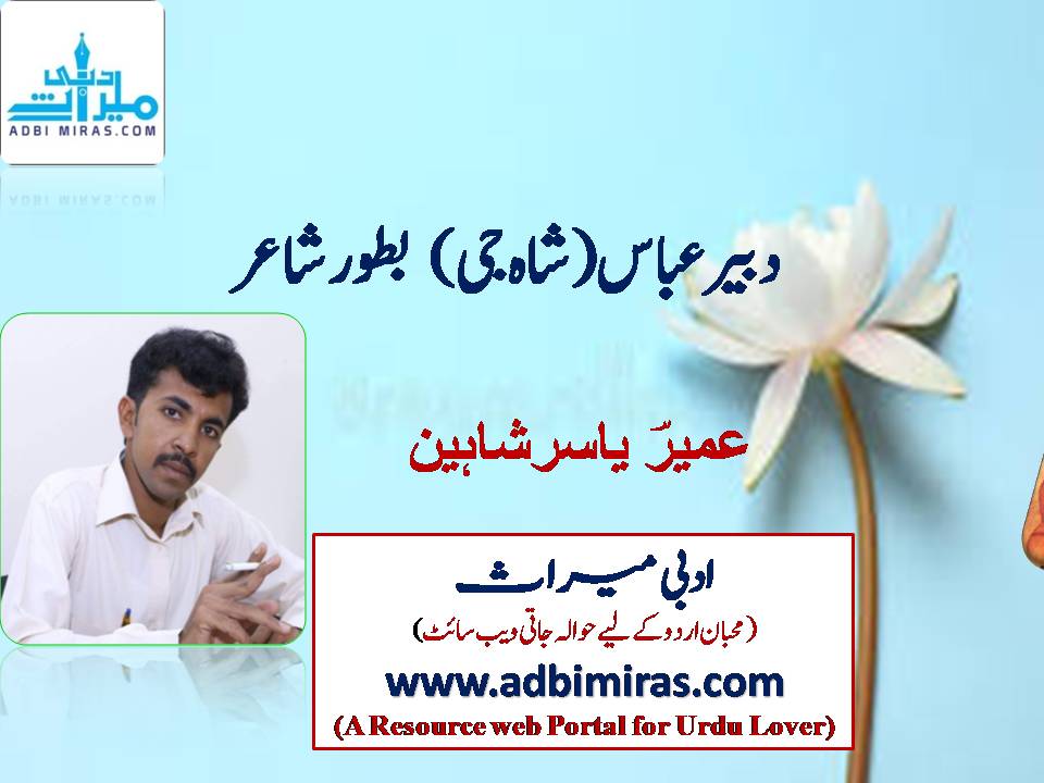 دبیر عباس (شاہ جی)شاعر،افسانہ نگار،محقق ،نقاد،معلم اورمقررکے طورپراپنی ایک منفردپہچان رکھتے ہیں ۔مگران تمام خصوصیات میں سے بطورشاعراورمحقق اُردوحلقوں میں اپنی مخصوص پہچان کے حامل ہیں ۔آپ کے کئی تحقیقی وتنقیدی مضامین قومی اور بین الاقوامی مجلات میں شائع ہوچکے ہیں۔خوب صورت شاعری اورافسانہ ،آپ کی تخلیقی صلاحیتوں کاعکاس ہے۔