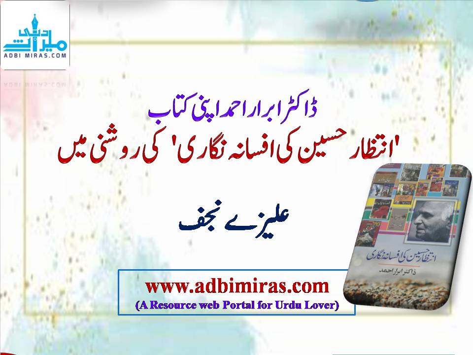 ڈاکٹر ابرار احمد اپنی کتاب ‘انتظار حسین کی افسانہ نگاری’ کی روشنی میں – علیزے نجف
