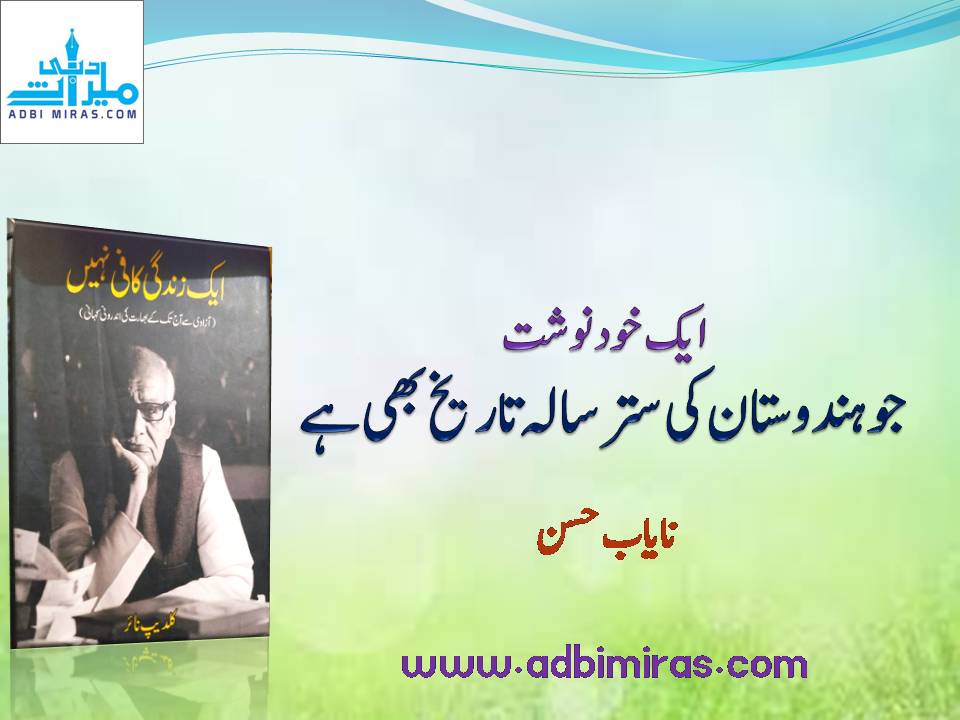 سرِدست مجھے ان کی خودنوشت پر کچھ بات کرنی ہے۔ ان کی خود نوشت انگریزی زبان میں پہلی بار 2201میں شائع ہوئی،جس کا نام وہ توA Lifetime is not Enoughرکھنا چاہتے تھے،مگر ان کے پبلشر نے ان کے مشہور کالمBetween the Linesسے متاثر ہوکر خودنوشت کا نامBeyond the Linesکے عنوان کو ترجیح دیا اور انگریزی میں یہ کتاب اسی نام سے شائع ہوئی۔اس کا اردو ترجمہ دوہزار سولہ میں فکشن ہاؤس، پاکستان سے شائع ہوا۔ اردومترجم معروف صحافی اسد مفتی اور سردار عظیم اللہ خاں ہیں۔ اردو میں اس کا نام’’ایک زندگی کافی نہیں‘‘ہے اور ہندی ترجمہ بھی اسی نام سے شائع ہوا ہے۔