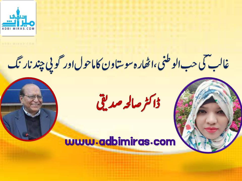 اس طرح گوپی چند نارنگ کے بیانات سے غالب کی حب الوطنی پر اٹھ رہے سوالوں کی گرد کافی حد تک صاف ہو جاتی ہے اور اصل وجوہات تک پہنچنے میں رسائی ہوتی ہے ۔یہ یقینا ایک وسیع موضوع ہے جسے چند صفحات میں سمیٹنا اور اس پر تفصیلی گفتگو کرنا ممکن نہیں ۔لیکن اس مضمون میں ان تمام اہم نکات اور وجوہات پر روشنی ڈالنے کی کوشش کی گئی ہے جس سے اٹھارہ سو ستاون کے حالات غالب کی حب الوطنی اور اس پر نارنگ صاحب کے خیالات پر بھر پور روشنی پر سکے اور اس موضوع کو سمجھا جا سکیں ،امید یہ میری یہ کاوش آپ کو پسند آئے گی ۔