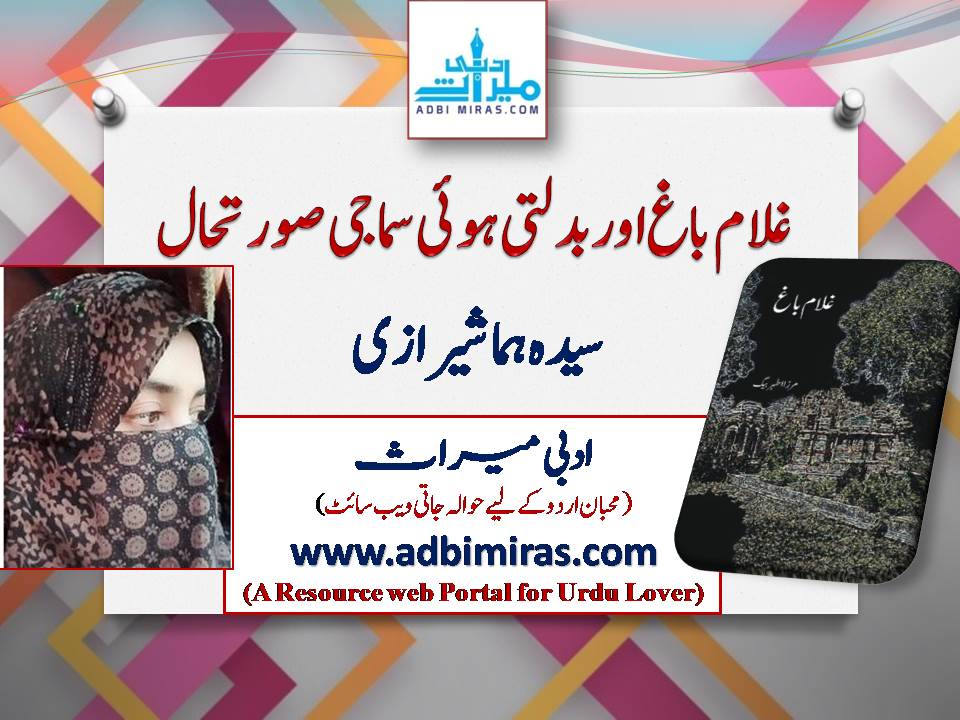 غلام باغ میں بدلتی ہوئی سماجی صورتحال جدید سماج کی عکاسی بن کر قاری کے سامنے آتی ہے اس میں بیان کیے گئے موضوعات، اسلوب اور زبان و بیان سب اسی سماجی تغیر کی مرہون منت ہے ناول میں موجود انتشار اور عدم برداشت کی کیفیت موجودہ سماج کے انسان کا سب سے بڑا مسئلہ ہے مختصر یہ کہا جائے کہ بہترین ادب سماجی زندگی کے تمام رنگوں اور مسائل کو اپنا حصہ بناتا ہے تو غلط نہ ہو گا یہی وجہ ہے کہ غلام باغ میں سماجی بدلاؤ کے،مسائل اور متوازی سماج کو بھی کمال مہارت کے ساتھ کہانی کا حصہ بنایا گیا ہے۔