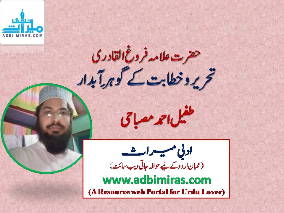 علامہ فروغ القادری اکیسویں صدی عیسوی کے خطیبِ مشرق و مغرب ہیں ، جن کی خطابت کا ڈنکا آج پوری دنیا میں بج رہا ہے ۔ دیارِ مشرق ومغرب میں عوام و خواص ان کا پُر مغز خطاب بڑے ذوق و شوق سے سماعت کرتے ہیں اور حد درجہ محظوظ و متاثر ہوتے ہیں ۔ امریکہ ، برطانیہ ، لندن ، فرانس ، ترکی ، جاپان ، ماریشش اور عرب کے مختلف ممالک میں ان کی خطابت نے انقلاب برپا کیا ہے ۔ ہر سال خصوصی خطیب کی حیثیت سے ” عرسِ رضوی ” کے موقع پر بریلی شریف مدعو کیے جاتے ہیں ۔ مشہور سیاسی رہنما جناب بیرسٹر اسد الدین اویسی صاحب انہیں سال بہ سال خطاب کے لیے حیدر آباد بلاتے ہیں ۔ غرض کہ عوام سے زیادہ خواص ان کی تقریر کے دلدادہ ہیں ، جس کی واحد وجہ صرف یہ ہے کہ ان کی تقریر میں علمیت ، زورِ استدلال اور فکر و نظر کی آمیزش ہوا کرتی ہے ۔ موصوف کی تقریر بڑی فصیح و بلیغ ہوا کرتی ہے ۔ خوب صورت جملے ، دلکش الفاظ و تراکیب اور دل و دماغ کوجھنجھوڑنے والا ان کا توانا اسلوب سامعین کو مسحور کر دیتا ہے ۔