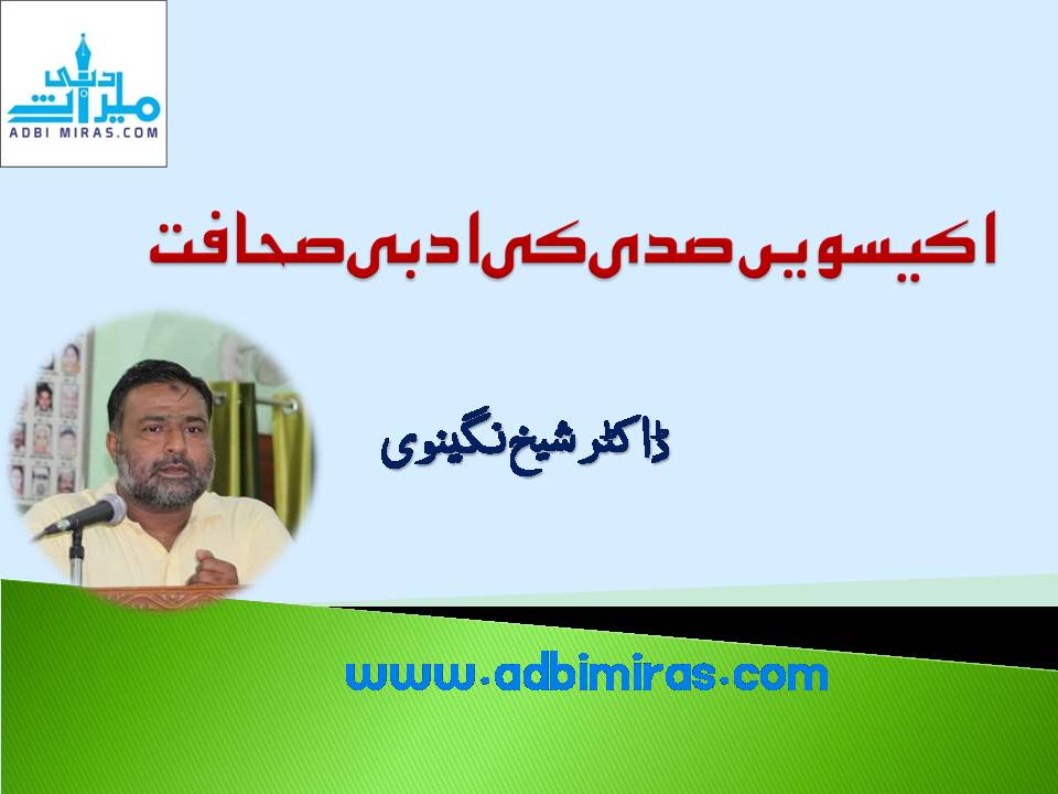 بیسویں صدی تک صحافت کا مطلب محض کاغذ پر پکّی روشنائی سے چھپنے والے اخبار اور رسالے ہی تھے، جن کا حلقہء اثر بھی محدود تھا۔ خواندگی، تعلیم ،قوتِ خرید اور ٹکنالوجی کی ترقی کی سطح کم ہونے کے سبب اخبارات و رسائل کی دنیا چھوٹی سی تھی۔ لیکن آج 21ویں صدی میں اخبارات و رسائل کے ساتھ الیکٹر انک میڈیا، سو شل میڈیا جیسے نئے تیز رفتار اور بے کاغذ قلم ذرائع کو زبر دست و سعت، پھلائو اور اثر و رسوخ حاصل ہوا ہے جس نے ماس میڈیا کی دنیا کی شکل ہی بدل دی ہے۔ اکیسویں صدی میں صحافت کے سامنے ایک بڑا چیلنج جدید ٹکنالوجی کا ہے۔ اب ادبی صحافت بھی تحریری کاغذی دنیا سے اسکرین اور انٹرنیٹ پر ہے، اور یہ روشن مستقبل کی ضامن ہے۔ اکیسویں صدی میں ادبی صحافت بھی جدید ٹکنالوجی سے ہم آہنگی پیدا کرکے اس کے شانہ بشانہ ہے۔ آج’’ دستک ڈاٹ کام ، دیداور ڈاٹ نیٹ، جدید ادب ڈاٹ کام، میز راب ڈاٹ ہوم، نوائے ٹوکیو، شعر و سخن ڈیش ٹور ینٹو، تحریر نو، تخلیق نو، وقار ہند، واسطہ نیٹ ڈاٹ کام، اردو دوست ڈاٹ کام، شاہ کار اردو ڈداٹ کام، ریختہ، جدید مرکز ڈاٹ نیٹ، شگوفہ ڈاٹ کام، اردو دنیا ڈاٹ نیٹ، تریاق اردوڈاٹ کام اور بصیرت آن لائن وغیرہ بڑی تعداد میں انٹر نیٹ پر ادبی صحافت کی سائٹ ہیں ساتھ ہی فیس بک، ٹویٹر، واٹس ایپ، وائبر وغیرہ پر بھی خوب اشعار، غزلیں، افسانچے پوسٹ ہو رہے ہیں اور ان سب کا دائرہ بین الاقوامی ہے۔