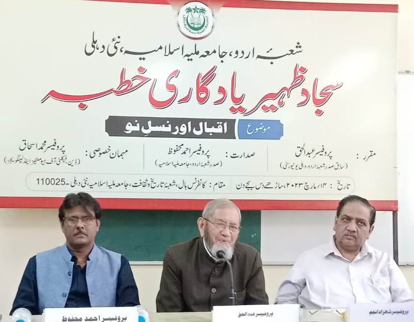 شعبۂ اردو، جامعہ ملیہ اسلامیہ کے زیر اہتمام سجاد ظہیر یادگاری خطبے کا انعقاد