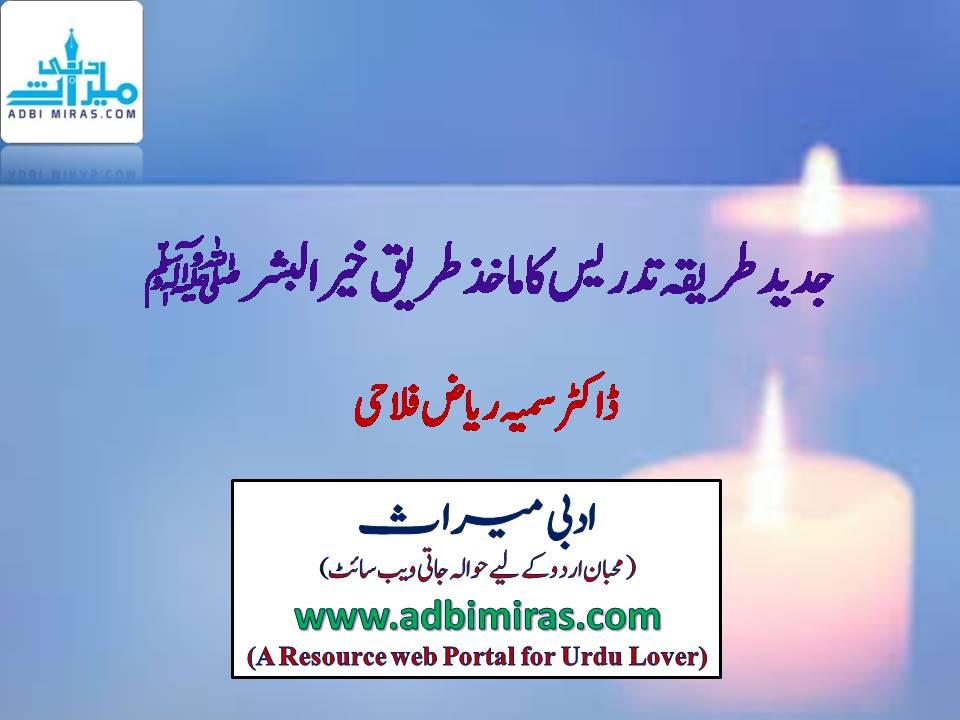 جدید طریقہ تدریس جو آج بی-ایڈ ، ایم-ایڈ ، ایم-اے ایجوکیشن اور پی ایچ ڈی یا ڈی-ٹی وغیرہ سے معروف ہے اگرچہ دور جدید کا انوکھا فن اور اہم کارنامہ مانا جاتا ہے مگر سیرت نبوی کا مطالعہ اس بات کی شہادت دیتا ہے کہ اسکا ماخذ و منبع رہبر اور معلم انسانیت کا پیش کردہ وہ بیش قیمت تحفہ ہے جو چودہ صدی قبل ہمیں شریعت اسلامی یعنی کتاب و سنت کی شکل میں عطا کیا گیا تھا۔