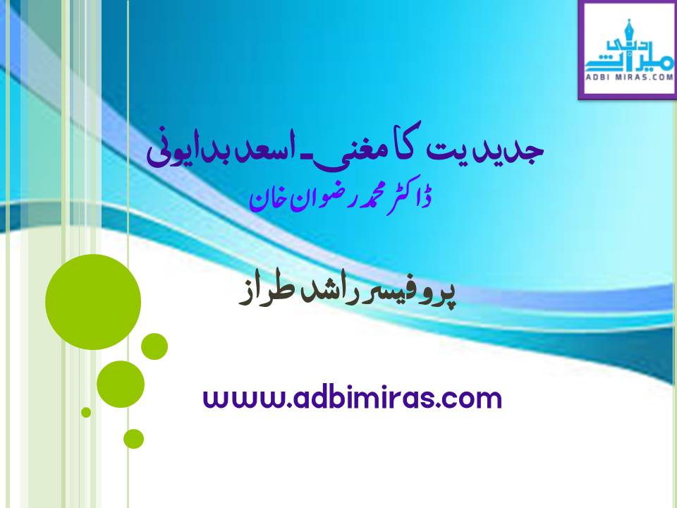 جدید یت کا مغنی۔ اسعد بدا یو نی/ ڈاکٹر محمد رضوان خان – پرو فیسر راشد طراز