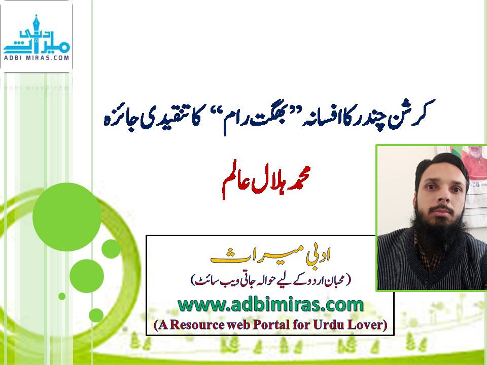غرضیکہ کرشن چندر کا افسانہ بھگت رام اس سماج کے لئے آئینہ ہے جو کہ لوگوں کو جات پات میں تقسیم کرتے ہیں۔اور امیر غریب میں فرق پیدا کرتے ہیں۔ لوگوں کے اوپر ظلم کرتے ہیں، اور اس ظلم کو لوگ خاموشی سے دیکھتے ہیں، کوئی بھی اس کو روکنے کی کوشش نہیں کرتا۔ بھگت رام کے ذریعے ہم کو یہ احساس ہونا چاہیے کہ چاہیں کتنی بھی مشکلات کا سامنا کرنا پڑے، ہمیشہ خوش رہنا چاہیے اور انسان دوستی کا خیال رکھنا چاہیے۔ بھگت رام کو جائیداد سے بے دخل کیا گیا لیکن اس نے کبھی معاشی تنگی کا سامنا نہیں کیا۔ وہ ہر چھوٹا بڑا کام کر کے اپنا گھر بار چلا لیتا تھا۔ کرشن چندر نے یہی سب اس افسانے بھگت رام کے کردار کے ذریعے پیش کرنے کی کوشش کی ہے۔ اور ترقی پسند تحریک کا نظریہ بیان کیا ہے۔