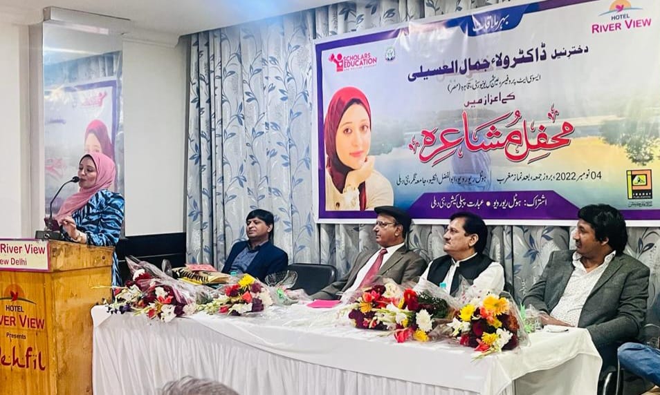 نئی دہلی: (پریس ریلیز) مصر سے تشریف لائیں اولین عربی نژاد اردو شاعرہ اور عین شمس یونیورسٹی ، قاہرہ میں اردو کی ایسوسی ایٹ پروفیسر ڈاکٹر ولاء جمال العسیلی کے اعزاز میں جامعہ نگر میں ایک پروقار مشاعرے کا انعقاد کیا گیا۔ ہوٹل ریور ویو میں ہونے والے اس مشاعرے کا اہتمام عبارت پبلی کیشن نے اسکالرس ایجوکیشنل اینڈ ویلفیئر اکیڈمی اور ہوٹل ریور ویو کے اشتراک سے کیا تھا۔ جس کی صدارت مشہور و معروف ادیب و شاعر پروفیسر خالد محمود نے کی۔ پروفیسر شہپر رسول اور مجلس اتحاد المسلمین صوبہ دہلی کے صدر کلیم الحفیظ مہمانان خصوصی تھے۔ جبکہ جامعہ ملیہ اسلامیہ کی وائس چانسلر کے سکریٹری ڈاکٹر عبدالنصیب، سماجی کارکن حفظ اللہ انصاری، ارشد حسین اور زاہد عظیم نے مہمانان اعزازی کے طور پر تقریب میں شرکت کی۔ مشاعرے کی نظامت معین شاداب نے کی۔انہوں نے اپنی ابتدائی گفتگو میں ولاء جمال العسیلی کا تعارف کراتے ہوئے ان کے کے فن و شخصیت پر بھرپور روشنی ڈالی۔پروفیسر خالد محمود اور پروفیسر شہپر رسول نے ولاء جمال کی ادبی خدمات ستائش کی۔ سلام الدین خان ، ڈاکٹر یامین انصاری، نوازش مہدی، ڈاکٹر فرمان چودھری، ڈاکٹر نعمان قیصر ،آسیہ خان نے مہمانوں کا خیر مقدم کیا۔ اس موقع پر مختلف میدانوں کی سرکردہ شخصیات بڑی تعداد میں موجود تھیں، جن میں حقانی القاسمی ، ڈاکٹر زین شمسی، شفیق الحسن، مولانا افروز عالم قاسمی، حاجی نور محمد، زبیر سعیدی،ڈاکٹر محمد عارف، کشفی شمائل،سماجی کارکن چودھری جمشید، معراج احمد، شکیل احمد، ریاض اختر ، محمد شاہد وغیرہ کا نام قابل ذکر ہے۔پیش ہے مشاعرے میں شرکت کرنے والے شعرا کا منتخب کلام:
