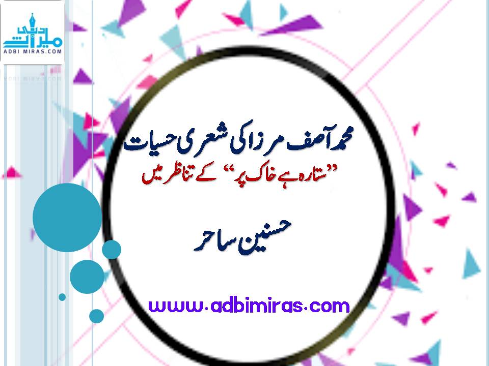 شاعری لاتعداد رجحانات اور میلانات سے عبارت ہے۔ کسی بھی معتبر شاعر کے ہاں اس کے بے شمار فکری زاویے مشاہدہ کیے جا سکتے ہیں۔ یہی فکری زاویے شاعر کی تخلیقی وسعت کا تعین کرتے ہیں۔ افکار کی رنگارنگی اور بو قلمونی اس کے فکری کینوس کی غمازی کرتی ہے۔ شاعر کے تخیلات میں تغیراتی شواہد کا پایا جانا لائقِ التفات و ستائش ہے۔ محمد آصف مرزا کے مجموعۂ کلام ’’ستارہ ہے خاک پر‘‘ کے مطالعہ سے ان کے مختلف الجہات فکری زاویے اور تغیراتی شواہد اقلیمِ خرد پر جلوہ ریز ہوتے ہیں۔ اس مجموعہ کا نام ندرت کا مظہر ہونے کے ساتھ ساتھ طرفہ طرزِ فکر کا غماز بھی ہے۔ اس کتاب میں حمد و نعت کے علاوہ غزل اور نظم کے حسیں رنگوں کی نگہت بیزیاں بھی مشاہدہ کی جا سکتی ہیں۔ ان کی غزل تغزل کی دولت سے مالا مال ہے۔ روایت اور جدت کا حسین امتزاج، محمد آصف مرزا کی شعری اپج کا وصفِ جمیل ہے۔ ان کے ہاں افراط و تفریط یا کسی ایک سمت فکری جھکاؤ دیکھنے میں نہیں آتا جس سے اُن کی متوازن شخصیت نمو پاش ہوتی ہے۔