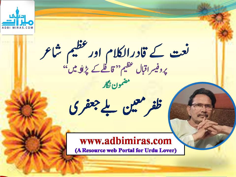 نعت کے عظیم شاعر پروفیسر اقبال عظیم کی یادوں کے اجالوں سے میرے گھر کےدرودیوار آج بھی جھلملارہے ہیں ۔ان کا اپنائیت اور محبت کے ساتھ تشریف لانا،ان کی بصیرت افروز نعتوں سے ہمارا لطف اٹھانا،ہر ہر نعت کے ایک ایک شعر میں مخفی سیرت النبی صلی اللہ علیہ وآلہ وسلم کےتابناک پہلووں سےحرم ِ دل کاجگمگانا اورعشق و محبت میں ڈوبے ہوئے آتش ِ شوق کو بھڑکانا اسی وقت کیلئے نہیں تھا۔ لگتا ہے وقت کا سفر ٹھہر کر رہ گیا ہے یا میں اپنے عہد ماضی میں واپس آگیا ہوں ۔میں اب بھی اپنے گھر کی بیٹھک میں انہیں نعت سرا دیکھ رہاہوں ۔ میرے والدِ بزرگوارسید فخرالدین بلے کاانگ انگ انہیں داد دے رہا ہے اور محترم احمد ندیم قاسمی تصویرِ حیرت بنے ہوئے ہیں ۔