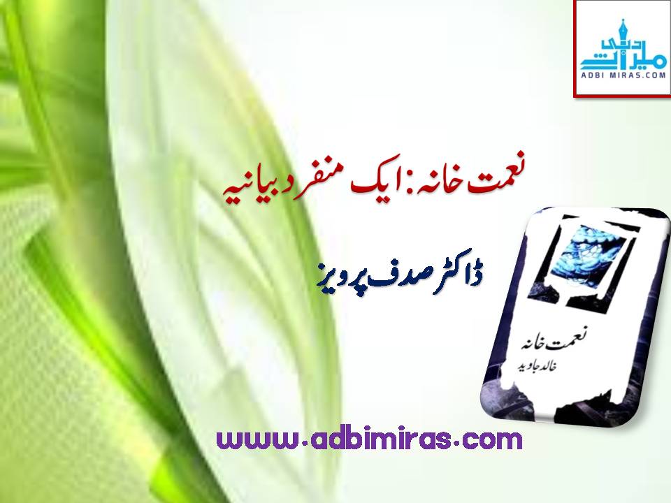زیر نظر ناول نعمت خانہ اردو ناول کی تاریخ میں ایک سنگ میل کی حیثیت رکھتا ہے۔ انتہائی انوکھا طرز بیان، گہری بصیرت، نادیدہ حقیقتوں کا گہرااور ملال انگیز احساس ،انسان اور کائنات کے درمیان پائے جانے والا پراسرار اور مابعد الطبیعاتی رشتہ اس ناول کی اہم خصوصیات ہیں۔