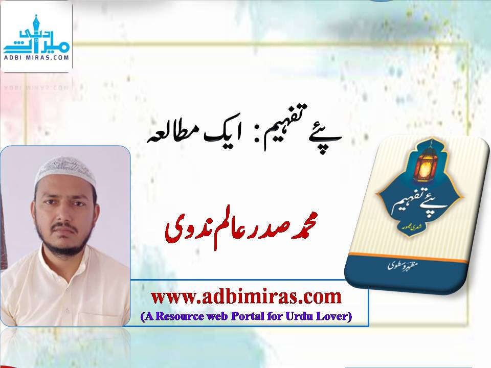 "پۓ تفہیم ” میں حمد،ونعت ، کے علاوہ پینسٹھ غزل اورمختلف عناوین سے آٹھ نظمیں ہیں جواس مجموعہ کاکل اثاثہ ہیں۔  کتاب کا نام ”پۓ تفہیم “ذرا مشکل نام ہے مگر یہ صاحب کتاب کا فیصلہ ہے۔ جہاں تک ممکن ہو کتاب کانام آسان رکھناچاہیےتاکہ قاری کاذہن آسانی سےسمجھ سکے۔کتاب ظاہروباطن دونوں اعتبار سےجاذب نظرہے جسےایجوکیشنل پبلشنگ ہاٶس نٸی دہلی نےچھاپاہے ۔ ١٩٢صفحات کی کتاب صرف ١٧٥روپےمیں دستیاب ہے ۔ امید ہےکہ یہ کتاب اردو آبادی میں پسندکی جاۓگی ،میں اس کتاب کی طباعت پرمظہؔروسطوی کومبارکباددیتاہوں اورآگےبھی نیک توقعات رکھتاہوں۔