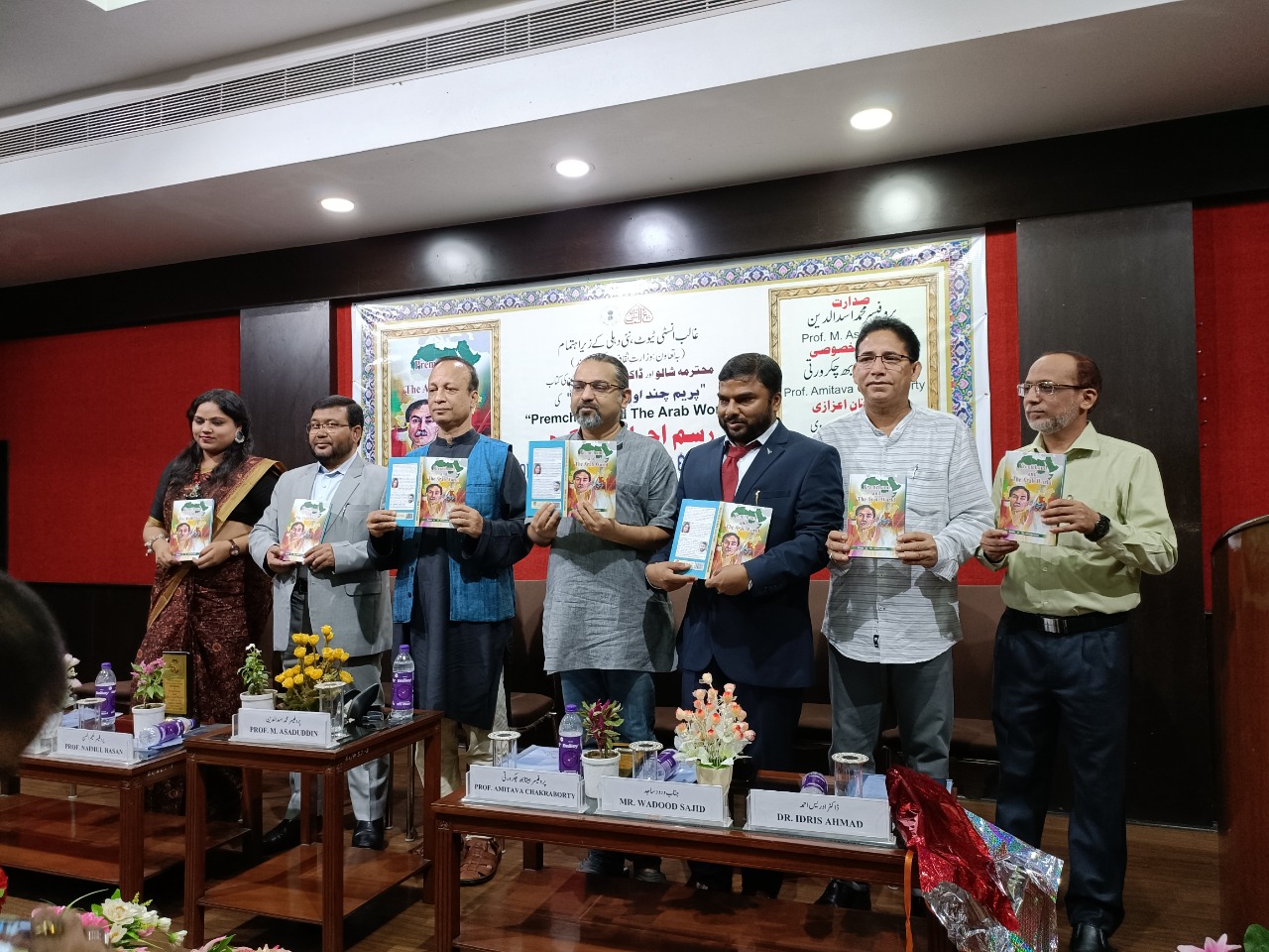 غالب انسٹی ٹیوٹ میں محترمہ شالو اور ڈاکٹر جسیم الدین کی مشترکہ تصنیف ’پریم چند اینڈ دی عرب ورلڈ‘ کی رسم اجرا کی تقریب میں ماہر پریم چندیات پروفیسر اسد الدین کا اظہار خیال