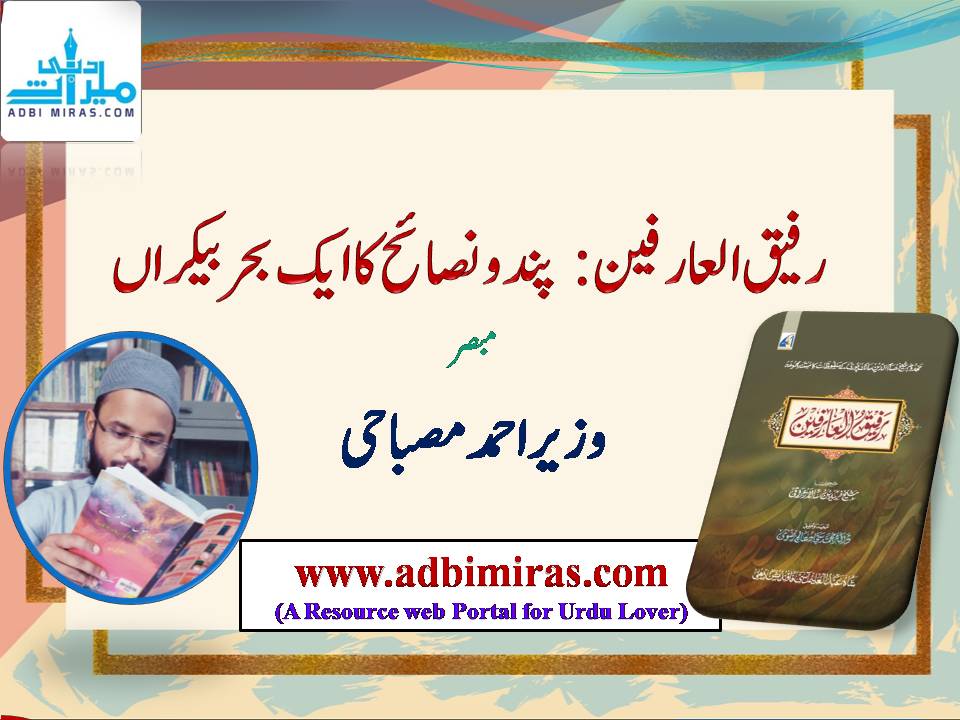 رفیق العارفین: پند و نصائح کا ایک بحر بیکراں – وزیر احمد مصباحی