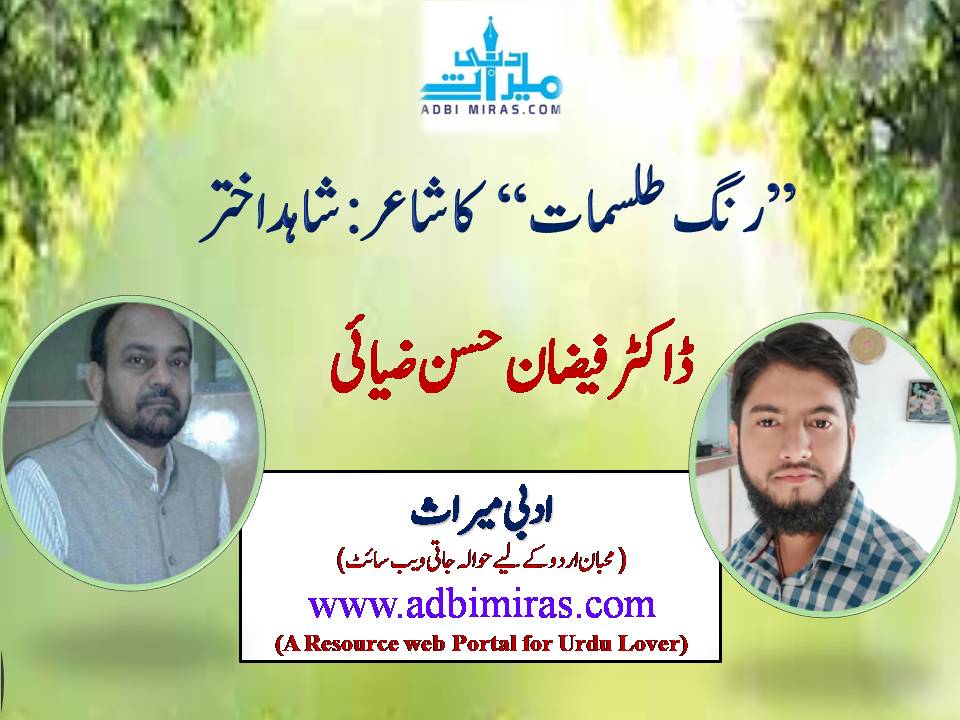 ۸۰کے بعد شعری ا فق پر اپنی موجودگی کا احساس کرانے والے شعرا میں شاہد اختر ایک سنجیدہ اور معتبر نا م ہے ۔’’ رنگ طلسمات‘‘ شاہداختر کا پہلا شعری مجموعہ ہے جو ان کے سفر شاعری سے تقریبا ۳۳ سال بعد منظر عام پر آیا ہے ۔تین دہائی سے زائد عرصہ گزنے کے بعد ایک کثیر الاشاعت شاعر کا شعری مجموعہ منظر عام پر آنا خود شاعر کی بے اعتنائی ، بے پروائی یا عدم دلچسپی سے ہوتا ہے۔ جس کا اعتراف انہوں نے خود اپنے انٹرویو میںکیا ہے۔ ’’ عام طور سے شعرائ کی طرح میں اپنی چیزیں یا تخلیقا ت محفوظ کر کے نہیں رکھتا تھا ۔ اس زمانے میں مجھے اپنے حافظے پر پورا بھروسہ تھا اسی وجہ سے میں نے اپنی تخلیقات کوبہت حفاظت سے نہیں رکھا ۔ ( ’’ رنگ طلسمات ‘‘ ص ۱۷۱) اس بیان سے یہ بھی اندازہ لگایا جا سکتاہے کہ مجموعے میں شامل ۱۶۳ غزلوں کے علاوہ بھی کئی اہم غزلیں ان کی بے توجہی کے سبب ضائع ہو گئی ہوں ۔بہر حال جو شعری سرمایہ انہوں نے ’’ رنگ طلسمات ‘‘ کی شکل میں پیش کیا ہے اس کی طرف متوجہ ہوتے ہوئے ان کے شعری سفر پر ایک نگاہ ڈالتے ہیں ۔شاہد اختر کا تعلق تاریخی عظمت اور علمی و ادبی شہرت والے شہر سہسرام سے ہے ۔جس نے ملک و ملت کو بڑے بڑے علما ئ ، فضلائ ، حکمائ ، ادبا ، شعرائ ،اور صوفیائ عطا کیے جن کی علمی ، دینی اور ادبی فضا سے ایک جہاں نے استفادہ کیا ۔شاہد اختر نے اسی گہوارئہ علم و ادب میں ایک سادہ اور دین دار گھرانے میں آنکھیں کھولیں اور اسی شہر کی سحر انگیز علمی اور ادبی فضانے ا ن کے اندر شعر فہمی اور شعر گفتنی کا ذوق پیدا کیا ۔اور سفر در سفر ان کی تخلیقات ملک اور بیرون ملک کے موقر جریدوں مثلاً ’’ پاسبان ‘‘ تعمیر ہریانہ ‘‘ شب خون‘‘ مباحثہ ‘‘ شاعر ‘’’سب رس‘‘ آج کل ‘‘ ذہن جدید‘‘ شعرو حکمت ‘‘ مکالمہ‘‘ تشکیل اور آئندہ وغیر ہ کی زینت بننے کے بعد قارئین پر اپنا تاثر قائم کرنے لگیں۔ان رسائل کا حصہ بننے کے بعد ہم یہ کہ سکتے ہیں کہ سفر شاعری کے آغازسے ہی شاہد اختر نے اپنا شعری رجحان سنجیدہ اور فکری شاعری کی طرف ملحوظ رکھا ہے ۔اور اپنے پیچیدہ تخلیقی تجربے کو بیان کرنے کی ایک کامیاب کوشش کرتے ہوئے اپنے تخلیقی سفر کے مدارج بڑی تیزی سے طے کر لیے ہیں۔