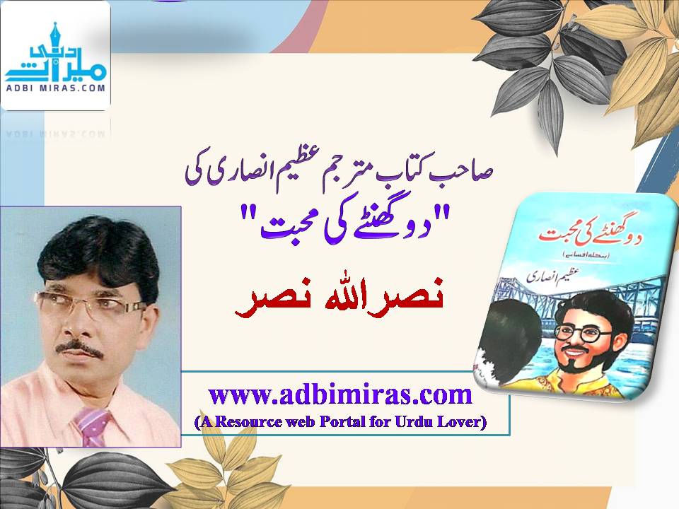 صاحب کتاب مترجم عظیم انصاری کی "دو گھنٹے کی محبت” نصراللہ نصر