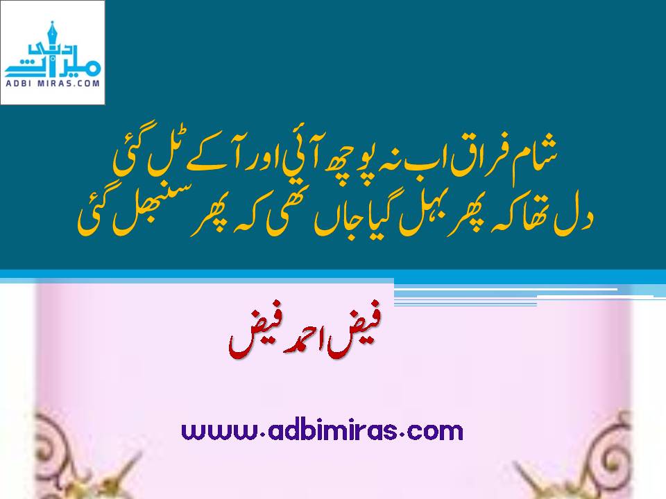شام فراق اب نہ پوچھ آئی اور آ کے ٹل گئی
