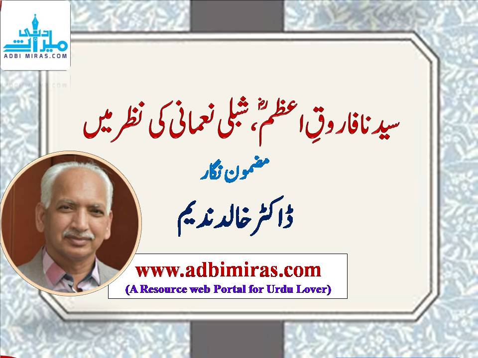 یہ کہنا بجا ہے کہ سیدنا عمرِ فاروق سے متعلق تحقیقی کاوشوں کا آغاز شبلی نعمانی نے کیا اور ان سے متعلق نظموں کی ابتدا بھی انھیں سے ہوئی۔اردو میں واقعاتی نظموں میں سیدنا عمر ِ فاروق کے عدل و انصاف اور طرزِ حکمرانی پر شبلی نے ان سے اپنی عقیدت کا ایسا اظہار کیا، جس کی مثال اردو زبان و ادب میں ان سے پہلے نہ ملتی تھی۔