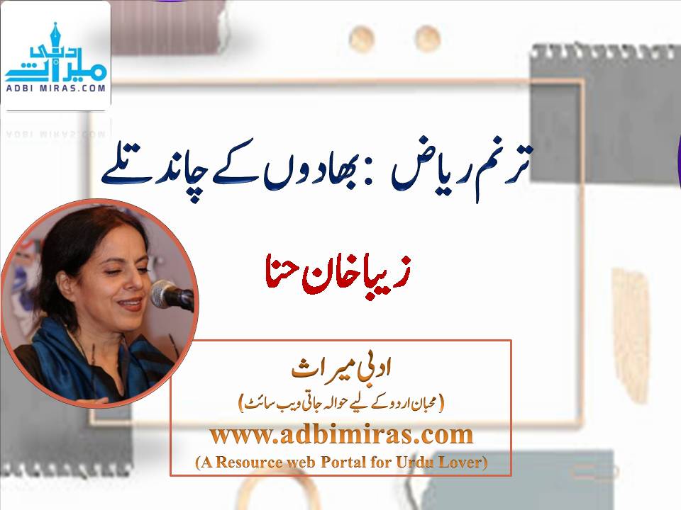 ” بھادوں کے چاند تلے ” کے پیش لفظ میں ترنم ریاض لکھتی ہیں،