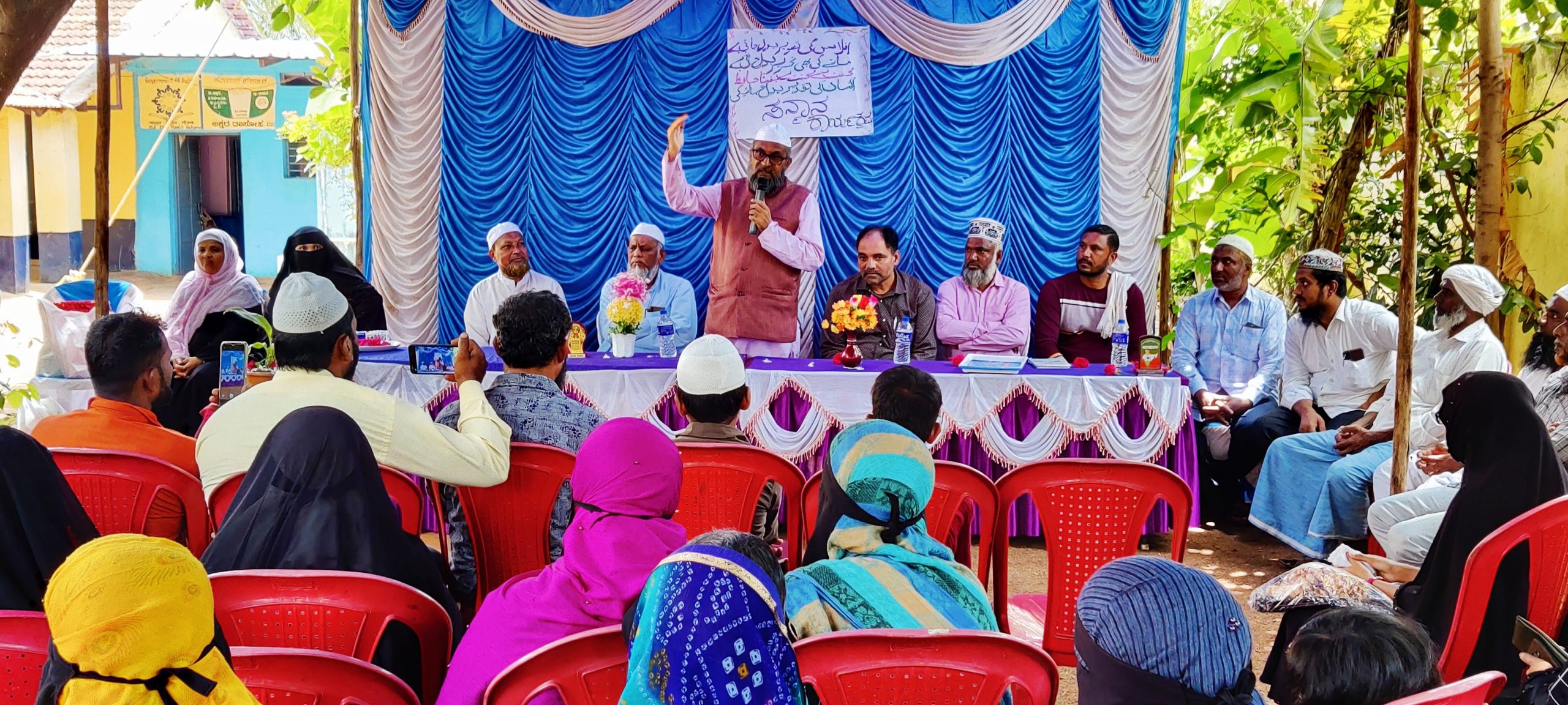 انہوں نے جلسے کی غرض و غایت پر روشنی ڈالتے ہوئے کہا کہ اس جلسے کی غایت یہ ہے کہ آج ہم نئے داخل ہونے والے بچوں کا استقبال کریں گے اور ان بچوں کو جنہوں نے میٹرک کے امتحان میں صد فیصد نمبرات حاصل کیے ہیں انہیں اعزاز سے نوازیں گے اور اپنے قدیم اور مخلص اساتذہ جناب رفیق مڈلیری اور جناب امیر خان بڈگی کے ریٹائرمنٹ کے موقع سے ان کی خدمات کا اعتراف کرتے ہوئے انہیں تہنیت پیش کریں گے۔ انہوں نے مزید کہا کہ ہم سبھوں کو یقین ہے کہ ڈاکٹر حافظ کرناٹکی کی تقریر سے طلبا اور اساتذہ کو نئی روشنی ملے گی۔