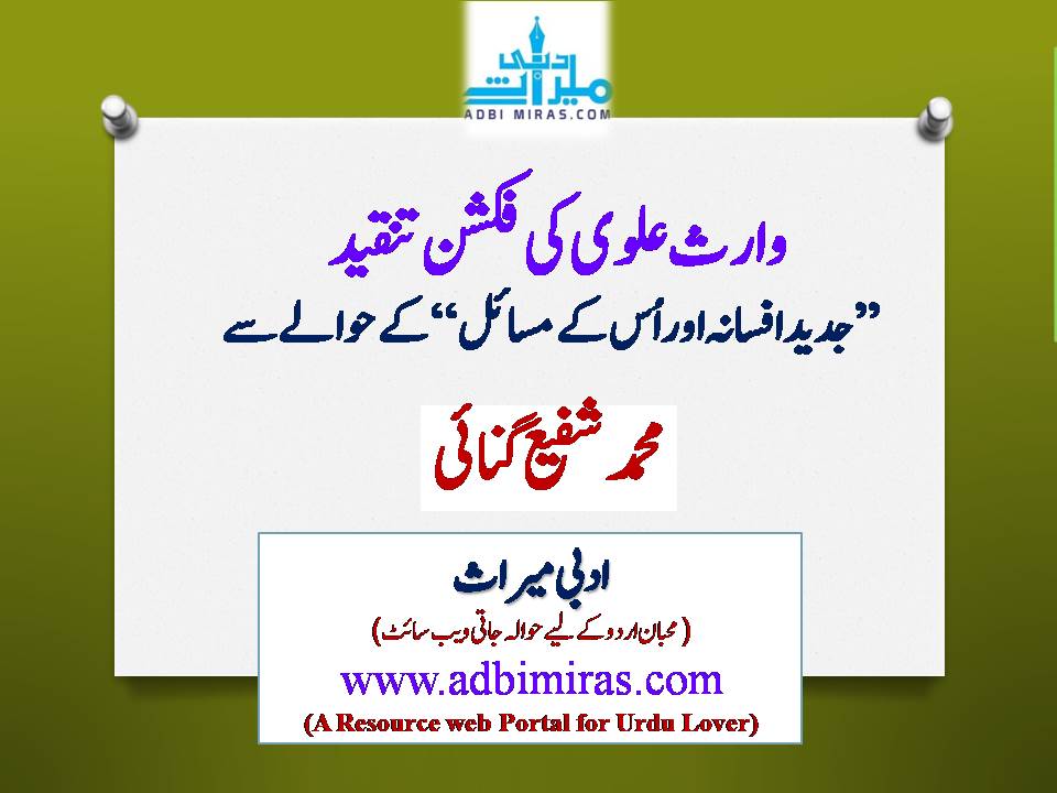 اُردو میں فکشن کی تنقیدکے حوالے سے ابھی زیادہ نہیں لکھا گیا ہے ۔ اگرچہ جدید ناقدین نے اس جانب توجہ ضرور کی ہے مگر یہاں ابھی بھی ایسے پہلو پِنہاں ہیں جن پر روشنی ڈالنا باقی ہے۔چند معروف جدید فکشن ناقدین میں شمس الرحمٰن فاروقی، سلیم احمد، گوپی چند نارنگ وغیرہ کے نام شامل ہیں۔ان ہی ناموں میں وارث علوی ایک اہم مقام رکھتے ہیں ۔وارث علوی بنیادی طور پر فکشن کے نقاد ہیں ۔انہوں نے جس گیرائی اور گہرائی سے فکشن پر اپنا قلم اٹھایا ہے اس کی نظیر کم ملتی ہے۔انھیں مشرقی فکشن تنقید کے علاوہ انگریزی، فرانیسی اورروسی ادب کی فکشن تنقید میں بھی کافی مہارت حاصل تھی۔وہ مغربی فکشن کے تنقیدی اصولوں کا بہت علم رکھتے تھے۔انہی اصولوں کی مدد سے انھوں نے مشرقی فکشن پر نظری اور عملی تنقید کی ہے۔ان کے مطالعے میں مشرق و مغرب کے اعلیٰ ترین ناقدین کا اہم رول رہا ہے ۔