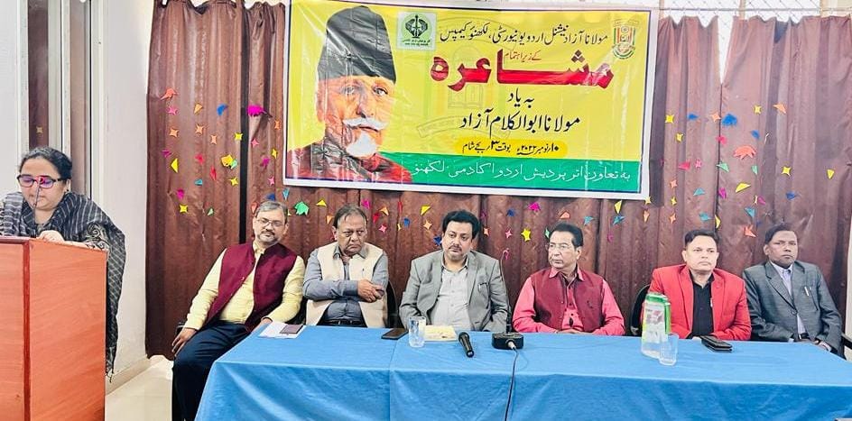 (لکھنؤ ۔۱۰ نومبر )مولانا آزاد نیشنل اردو یونی ورسٹی کے لکھنؤ کیمپس کے زیر اہتمام آزاد تقریبات کے تحت آج بہ یاد مولانا ابو لکلام آزاد ایک مشاعرہ کا اہتمام کیا گیا ۔یہ مشاعرہ اترپردیش اردو اکیڈمی کے مالی تعاون سے منعقد کیا گیاتھا ۔مشاعرہ کی صدارت پروفیسر عباس رضانیر نے فرمائی جبکہ نظامت کا فریضہ ڈ اکٹر عمیر منظر نے انجام دیا ۔ جناب عرفان لکھنوی کی نعت پاک سے مشاعرہ کا آغاز کیا ۔