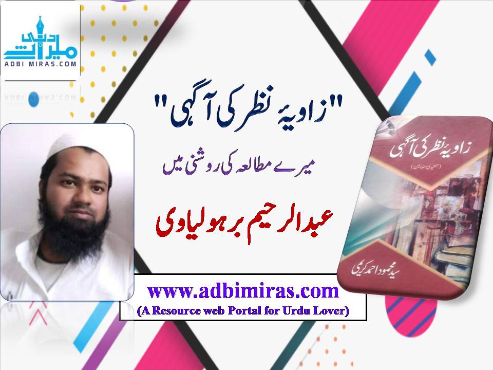 "زاویۂ نظر کی آگہی” ____ میرے مطالعہ کی روشنی میں – عبدالرحیم برہولیاوی