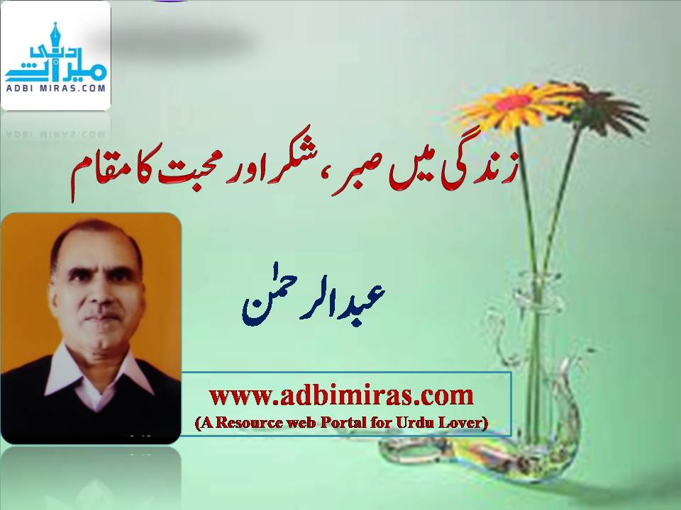دراصل، انسان کی زندگی صبر، شکر اور محبت سے ہی عبارت ہے۔ علامہ اقبال کا شہرہ آفاق شعر ہے: